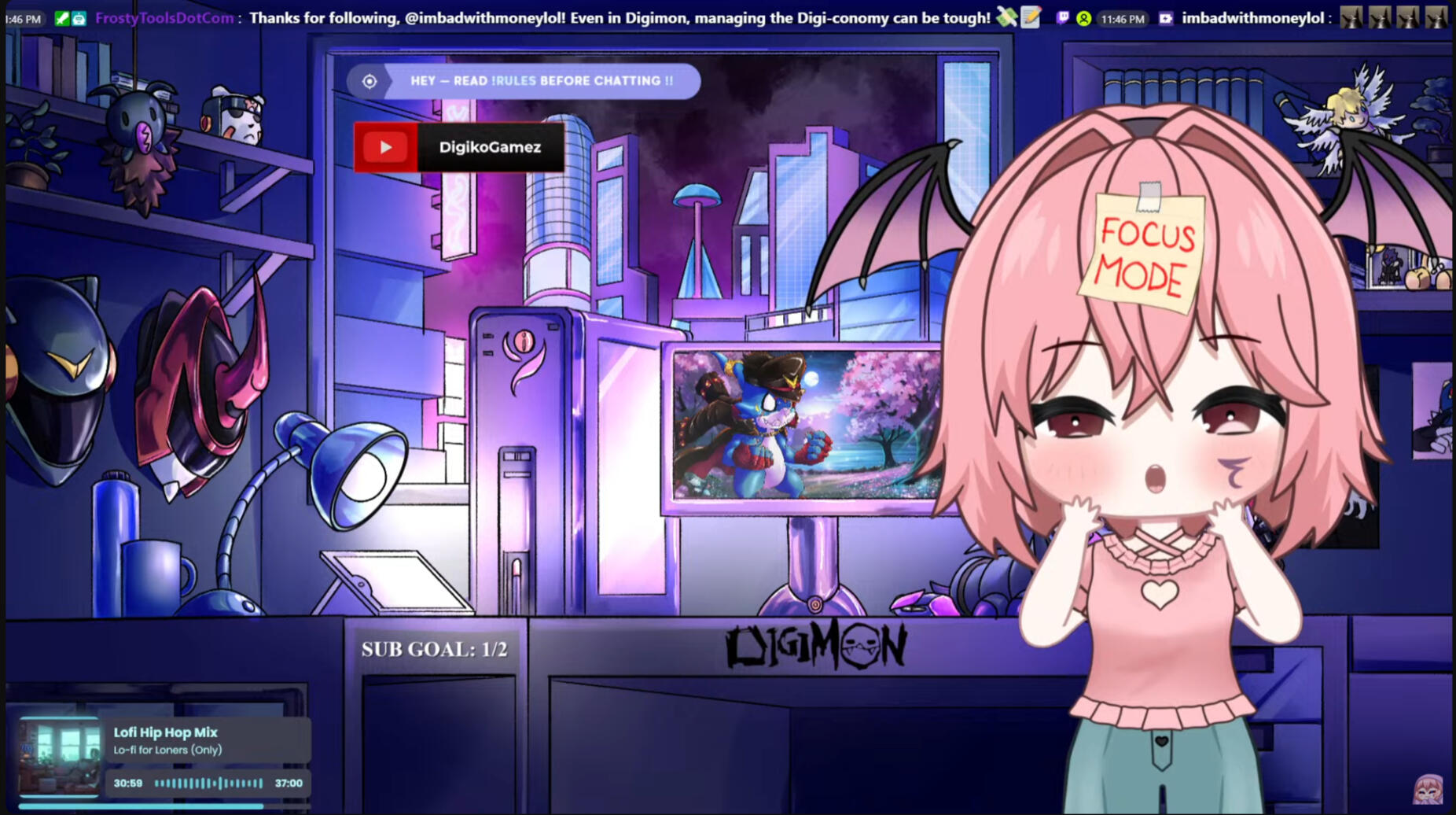 The Digi Terminal is an overlay set inspired by Digimon World. This set includes a Just chatting, background, and Gaming Scene.